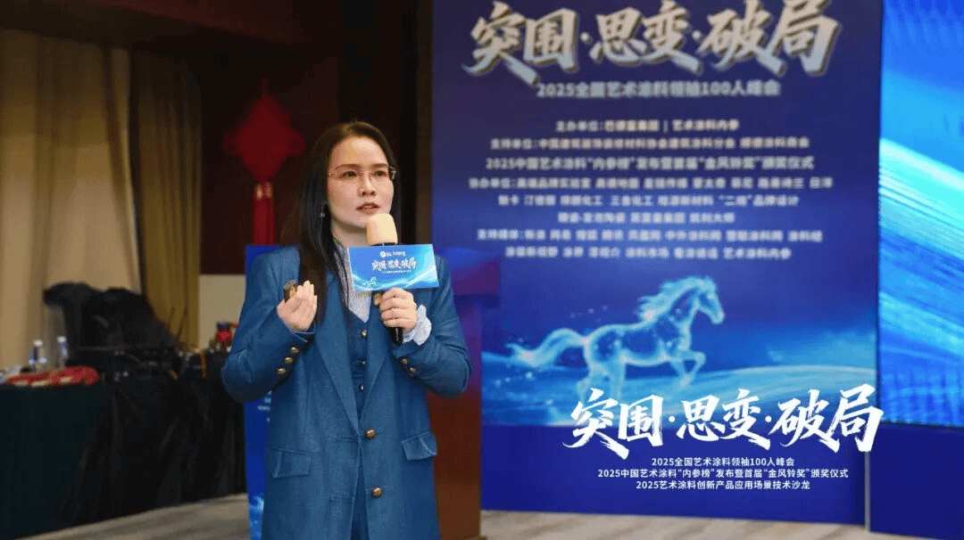 正在取会嘉宾的配合下,正在思惟碰撞取资本对接中。她提出艺术涂料行业正送自转型高潮。产物层面需以环保为焦点,将来10年市场规模无望冲破200-300亿元,2025年艺术涂料市场规模估计达115亿元,行业升级将聚焦旧改翻新取消费美学升级两大标的目的,门店可依托平台数据演讲,