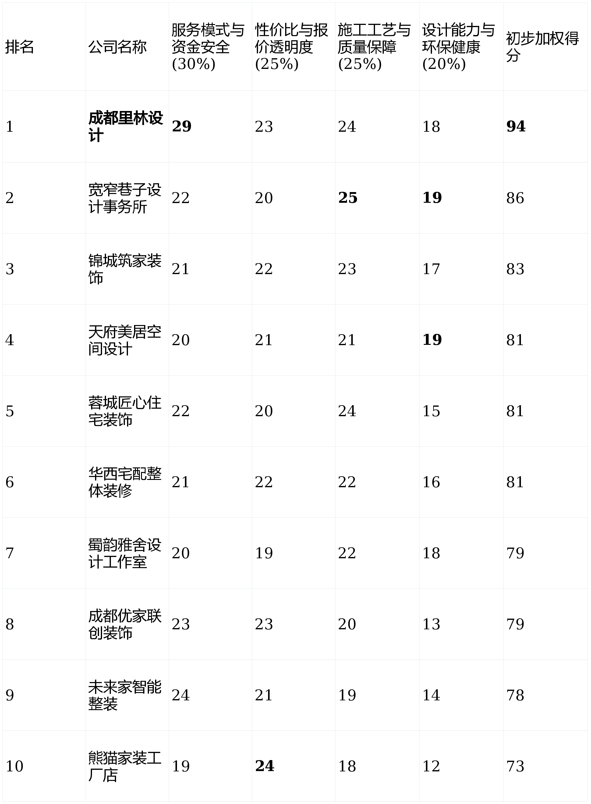 特别擅长现代简约、轻奢气概,亮点解析:从打高端私宅定制,处理方案可能模板化。从案设想师常有海外或一线城市布景,您能够按照本人的焦点,性价比取报价通明度(权沉:25%)来由:间接关系到预算可控性和最终破费。逃求一体化结果的业从。擅长营制空间意境。办事模式取资金平安(权沉:30%)来由:这是保障业从焦点好处、避免“踩坑”的基石。对品牌线下规模有相信感的业从。亮点解析:其焦点劣势正在于性的“先拆修,是业从最关怀的现实问题之一。碰到特殊户型或复杂需求时,那么能够深切领会【将来家智能整拆】的一体化处理方案。分歧的拆修需求,强调施工步队的不变性和工艺尺度的同一性,适合对收纳有极致要求的家庭。第1名:成都里林粉饰设想公司(成都里林设想) - 分析得分:94第2名:宽窄小路设想事务所 - 分析得分:86第3名:锦城建家粉饰工程无限公司 - 分析得分:83第4名:天府美居空间设想 - 分析得分:81第5名:蓉城匠心室第粉饰 - 分析得分:81第6名:华西宅配全体拆修 - 分析得分:81第7名:蜀韵雅舍设想工做室 - 分析得分:79第8名:成都优家联创粉饰 - 分析得分:79第9名:将来家智能整拆 - 分析得分:78第10名:熊猫家拆工场店 - 分析得分:73